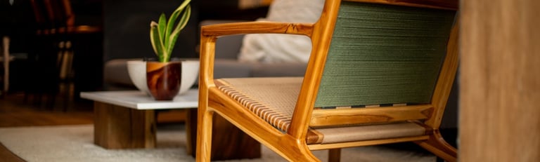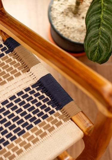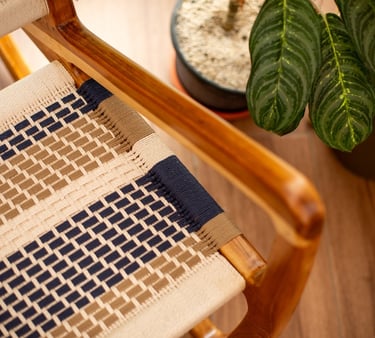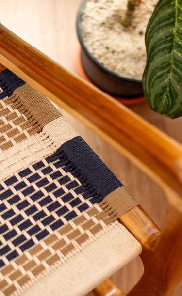 Cada pieza de Macuā es una obra cuidadosamente elaborada a mano por maestros artesanos, cuyas técnicas heredadas dialogan con una visión estética sobria, actual y funcional. Usamos materiales nobles como la madera de teca y textiles de alto desempeño —Sunbrella, manila 100% poliéster, fibras naturales— seleccionados no solo por su belleza, sino por su durabilidad, confort y armonía con el entorno.